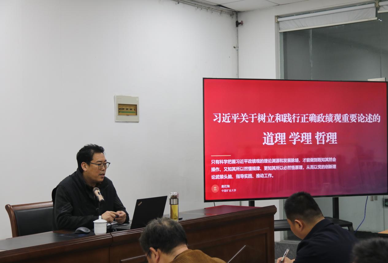 会议首先邀请人文与艺术学院党委书记赵红灿教授讲授专题党课。赵红灿教授以“习近平关于树立和践行正确政绩观重要论述的道理、学理、哲理”为题,从树立和践行正确政绩观重要论述的实践探索、基本道理、坚实学理、深刻哲理、实践进路等五个方面展开讲述。他讲到,习近平同志在地方工作期间就高度重视树立和践行正确政绩观,始终以正确政绩观立身立业、谋事成事,为全党树立了光辉典范。习近平关于树立和践行正确政绩观重要论述坚持立党为公的执政理念、为民造福的价值目标和科学谋划的规律遵循,植根于马克思主义政党的执政伦理,源自中国共产党政绩观百年演进,服务强国建设,民族复兴战略目标、体现了自我革命和社会革命的辩证统一。从本体论上体现了人民主体性和历史规律性的统一,从实践论上体现了知行合一与历史主动性的统一,从认识论上体现了真理标准和价值标准的统一,从价值论体现了公共性重构与人类命运共同体意识统一,从方法论体现了系统观念与底线思维协同创新。他指出,树立和践行正确政绩观重要论构建了防范和纠治政绩观偏差的全链条工作机制,为新时代党员干部创造经得起实践、人民和历史检验的实绩提供了根本遵循,促使党员干部牢固树立和践行正确政绩观,增强治国理政及创新创业的能力,以高质量发展书记新时代答卷。